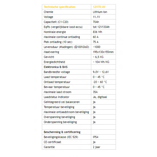 Batterie li-ion 12V70 AV avec indicateur de batterie numérique, pour les applications suivantes :